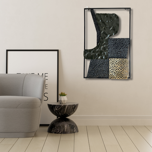 S271|アイアン壁飾り・深緑×黒×金が映える超個性派モダンアート【SAKURADA】