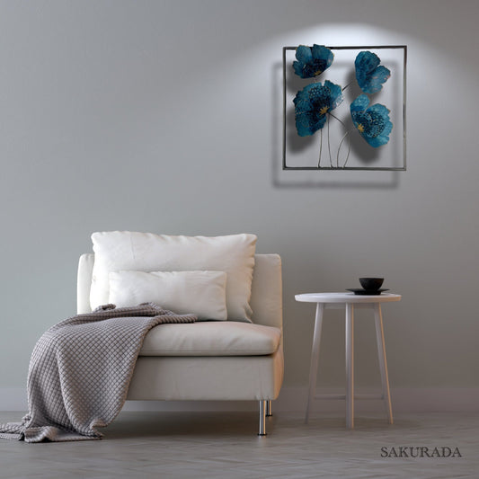 S074|アイアン壁飾り ブルーフラワー|印象的な青が映える、毎回即完売の大人気アイテム【SAKURADA】