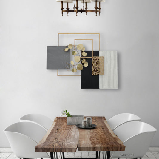 S272|アイアン壁飾り・ブラック×ゴールド×グレーが映えるホテルライクモダンアート【SAKURADA】
