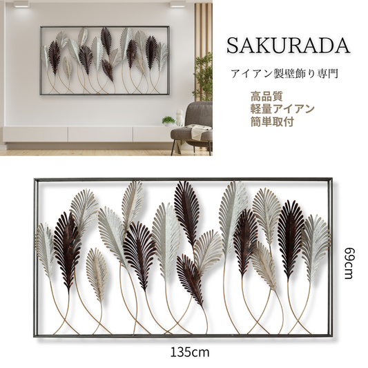 S243|アイアン壁飾り・美術館級の存在感を放つエレガントリーフ【SAKURADA】
