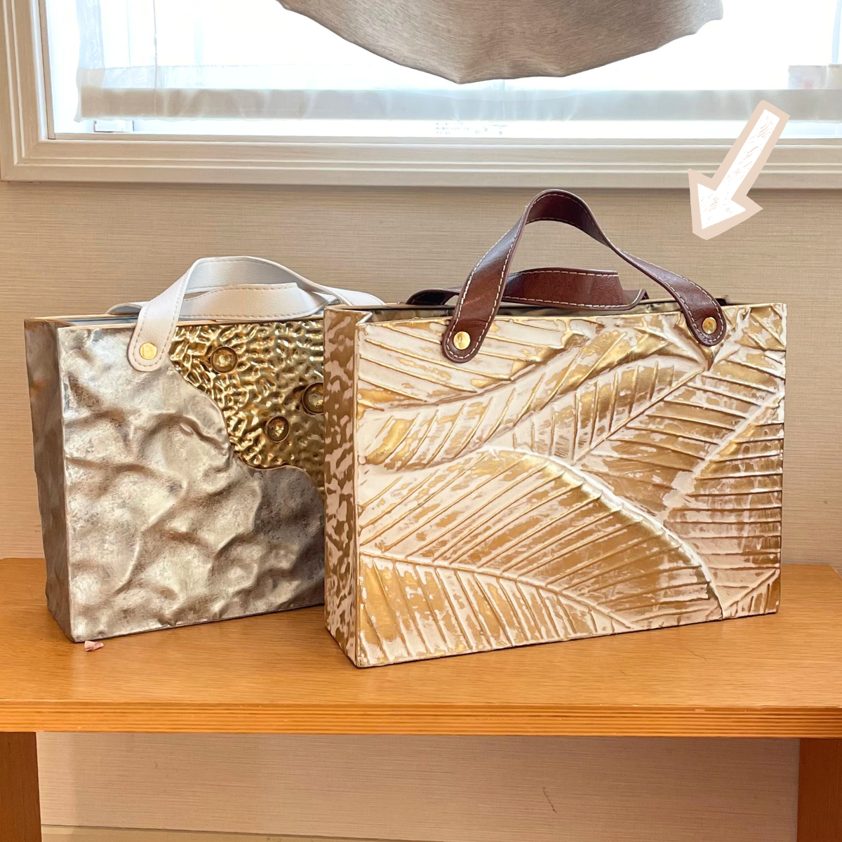 届いてすぐは取っ手部分が折れておりますので、ハンガーなどで吊って形状を整えてからお使いくださいませ。時間の経過とともに折れてきますので、気になる方はその都度調整が必要ですが、不良品ではございませんのでご了承くださいませ。