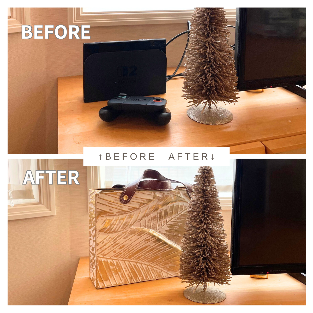 テレビ周りのごちゃごちゃ隠しに、マスクやティッシュなどを玄関先でもおしゃれに置けちゃう!本当に便利なインテリアです。もちろん造花などを飾ってもおしゃれです。