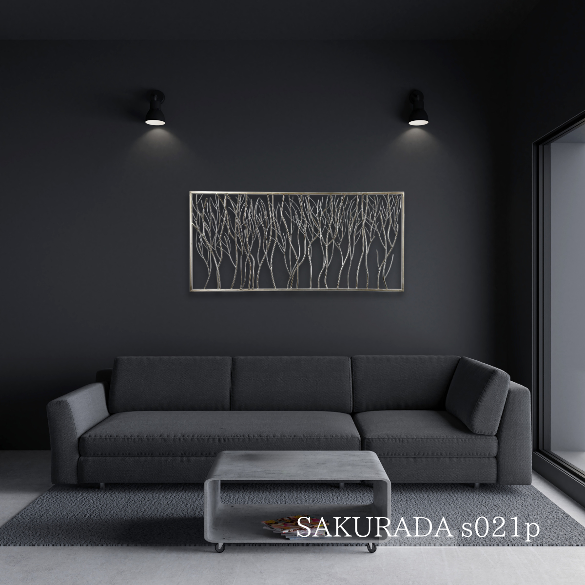 S021P|シルバーが映えるモダン壁飾り|洗練された空間を演出するアイアンウォールアート〖SAKURADA〗