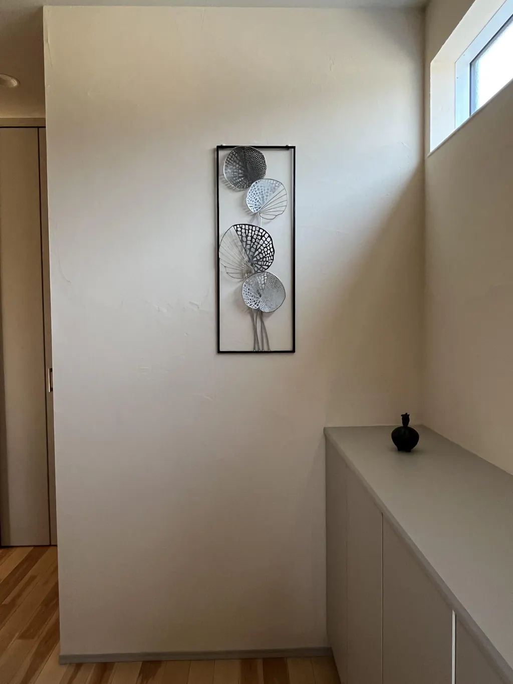 アイアン壁飾り3点購入しました。玄関、トイレ、リビングとアイアンで統一しました。漆喰の壁とも相性が良く、和モダンの新築の家に高級感が出ました。作りも丁寧で、壁にもかけやすかったです。