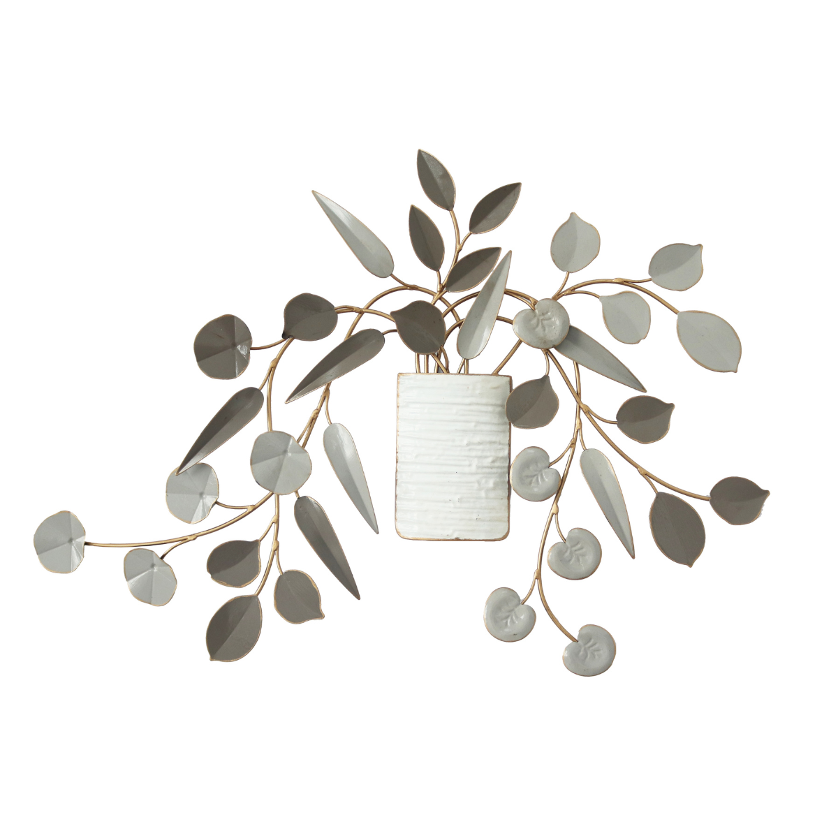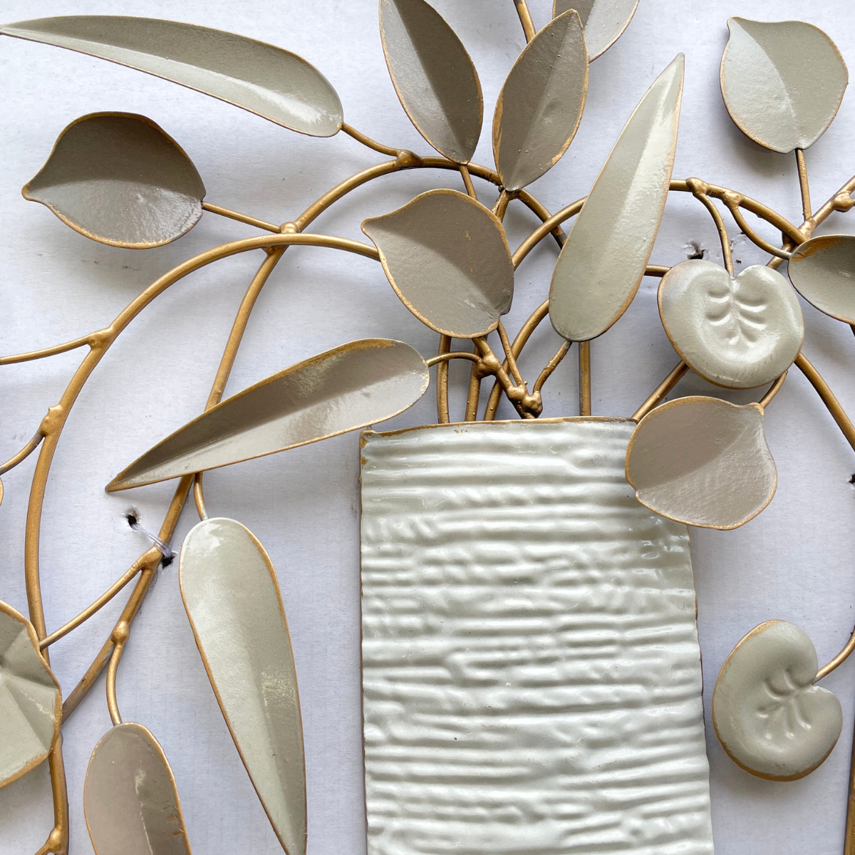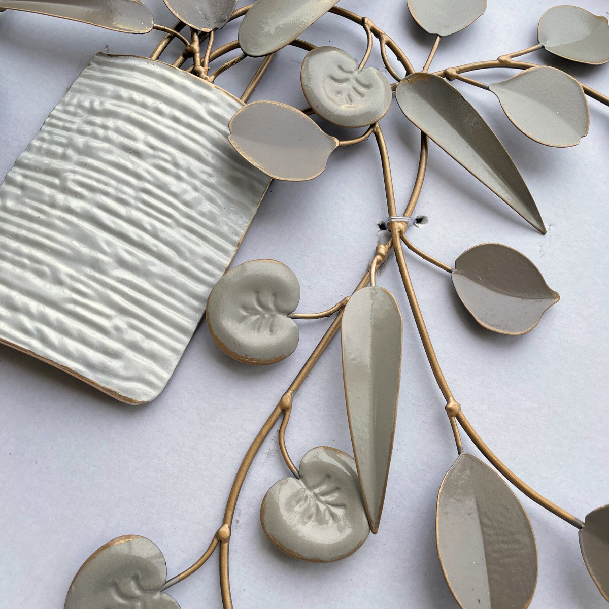 🌫 グレーの葉が美しい|小さめサイズのモダンアイアン壁飾り