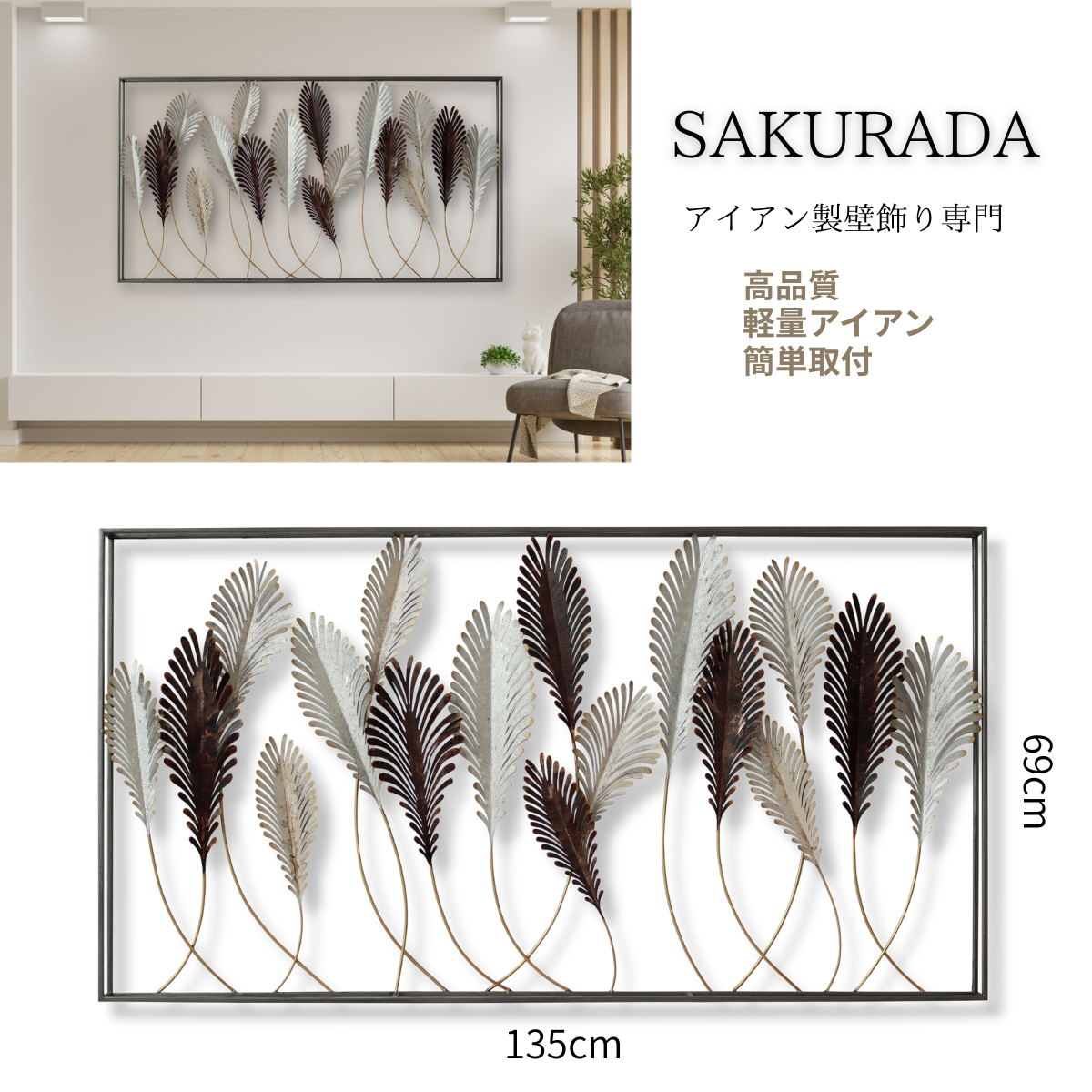咲羅多最大サイズの大型アイアンウォールアート