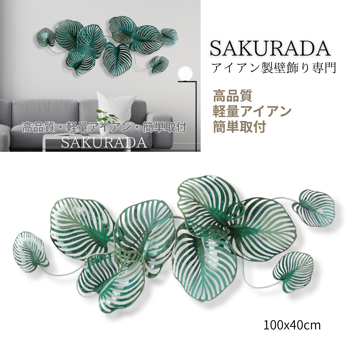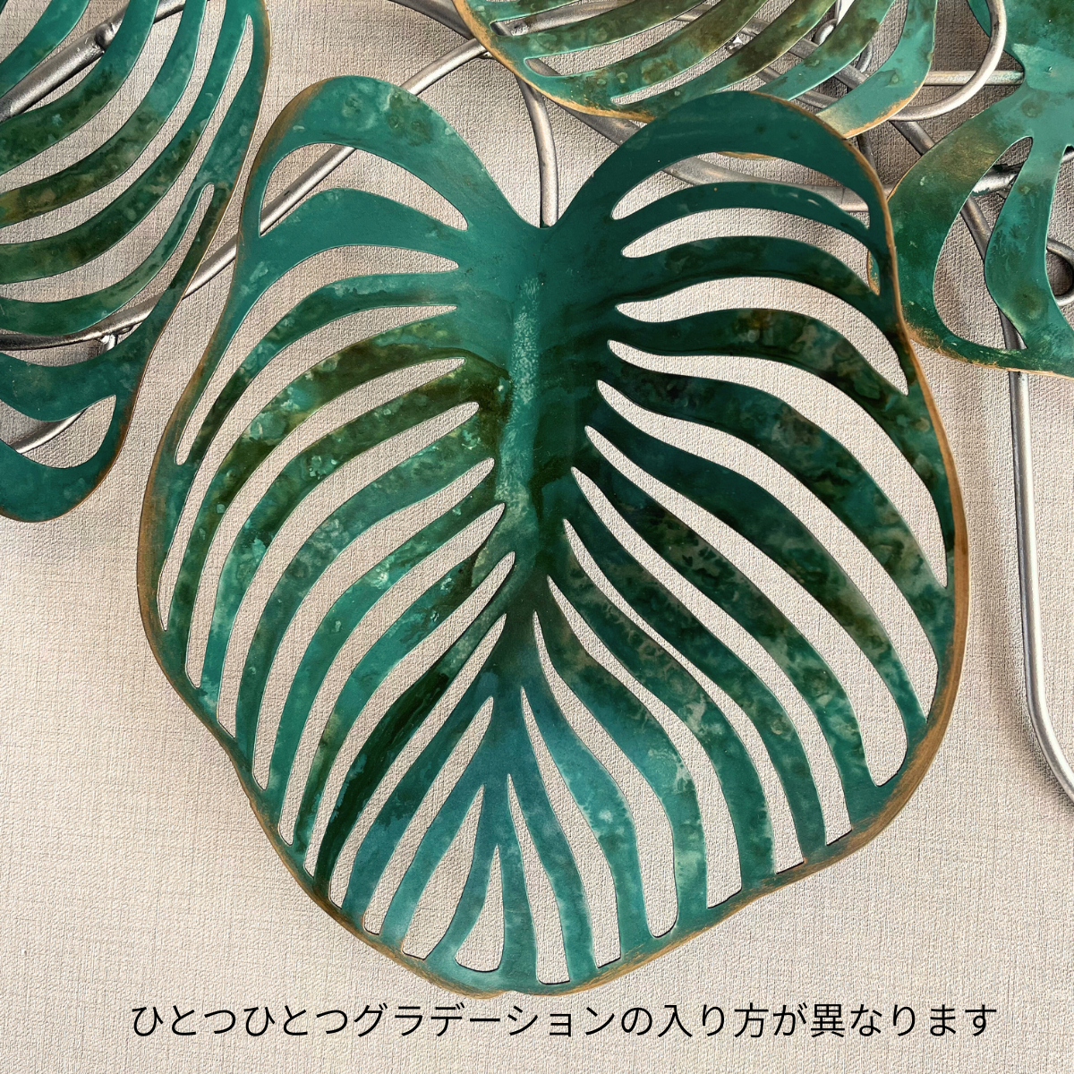 S263|アイアン壁飾り・グリーングラデーションが映えるモンステラリーフ【SAKURADA】
